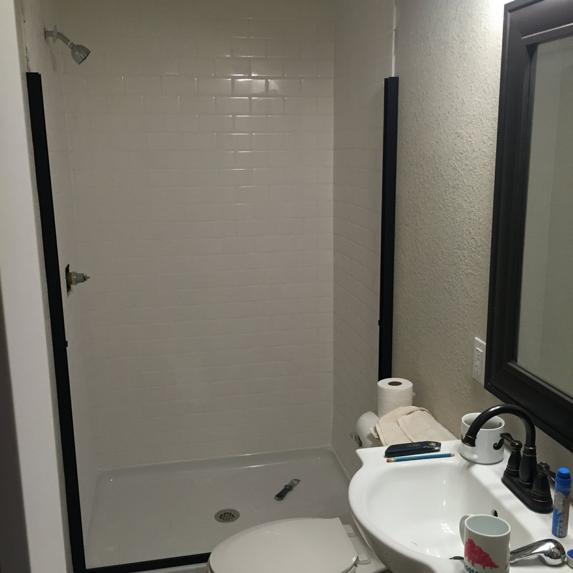 We are finishing up a bathroom remodel in the basement and I had plenty of help!